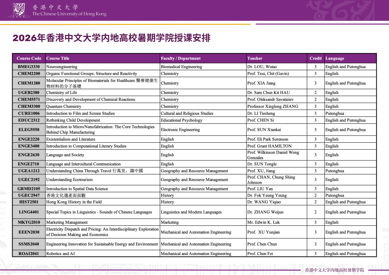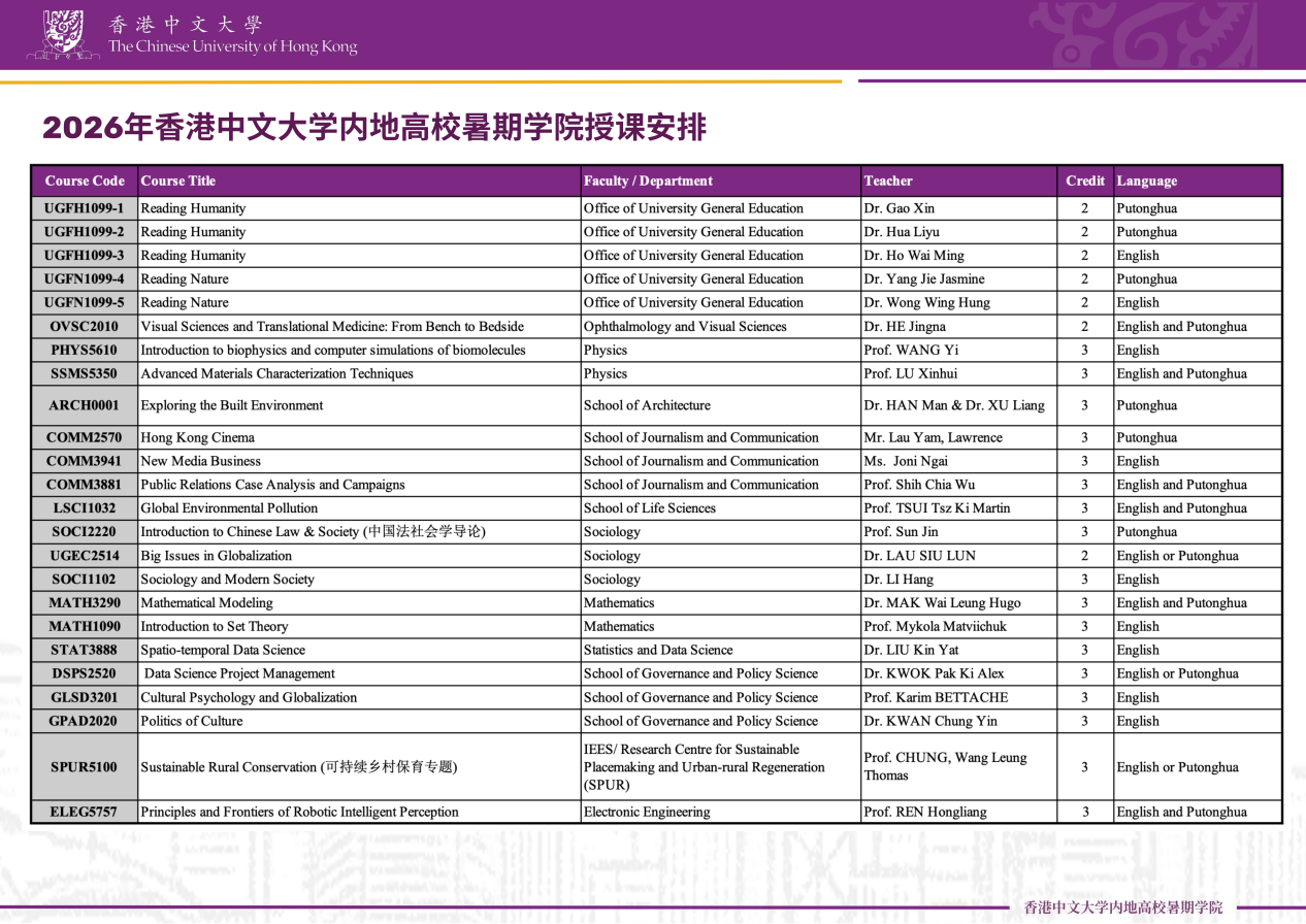 香港中文大学(The Chinese University of Hong Kong),简称港中大(CUHK),是一所亚洲顶尖、享誉国际的公立研究型综合大学,QS世界大学排名:第32位(2026)。香港中文大学2020年起暑期学院就备受各姊妹高校学生欢迎。今年该校继续举办“香港中文大学——内地高校暑期学院”,并期望招募更多来自不同地区的学生加入。在这里,你可以同顶尖教授、同龄精英和来自各地高校学生在国际化都市互动交流,开阔视野,体验香港特色文化。